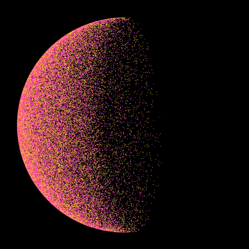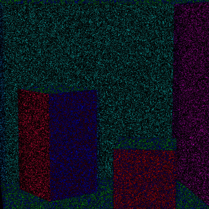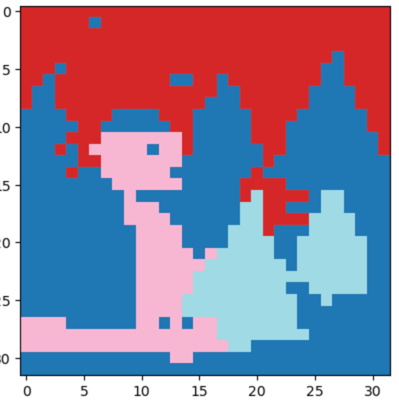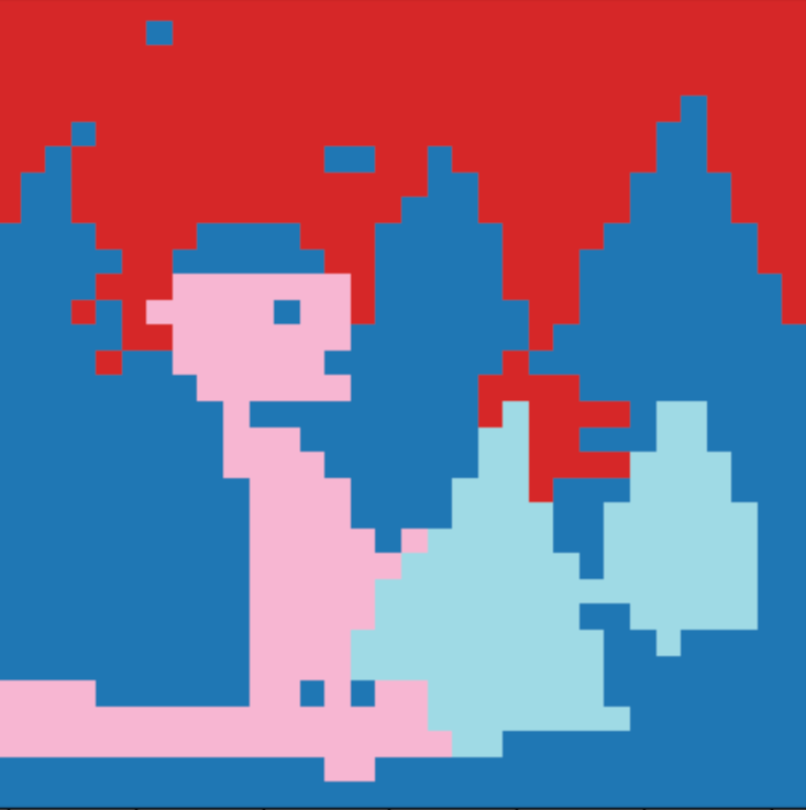 The first effect, "reveal," simply segments the image and reveals a few of the segments each frame. The second effect, "scramble," replaces the texture of a few of the segments with that of a different segment. This was more difficult than I had initially imagined. Many of the segments are very irregular shapes, which meant I needed a way to stretch one irregular shape to another. To do this without too much math, I made two simplifying assumptions. First, I assumed that all of the segments were topologically identical. In other words, any holes in a segment would be ignored, and the shape would only be stretched based on its outer contour. Second, instead of stretching one shape to another, I would stretch each shape to a square texture image and subsequently sample from the second shape from that texture using a mask.